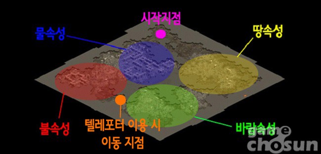 ▲ 던전 깊숙히 들어갈수록 땅-바람-불-물 속성 순의 몬스터를 만날 수 있다.