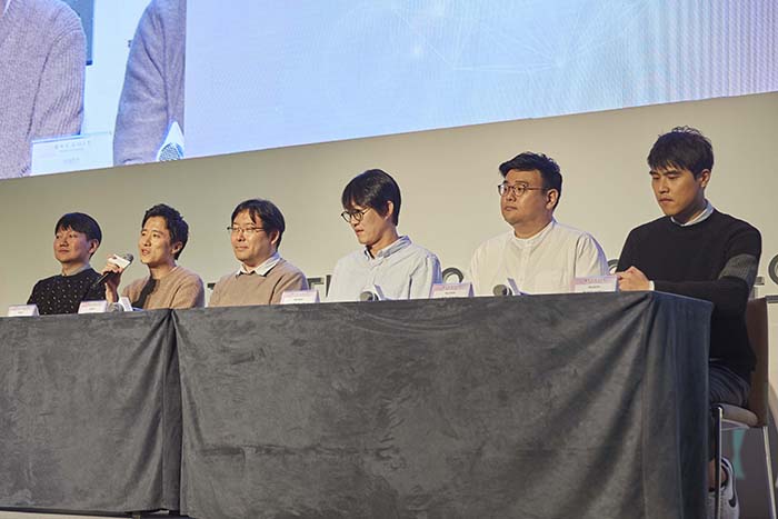 ▲ (왼쪽부터) 넷게임즈의 김의현 디렉터, 정호철 PD, 박용현 대표, 넥슨의 이정헌 부사장, 노정환 본부장, 최성욱 사업실장.