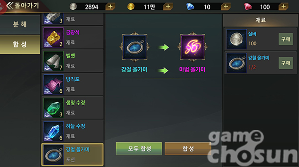 ▲ 합성 메뉴를 통해 저렴한 가격으로 마법 올가미를 합성한다.