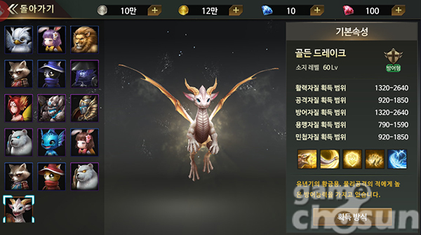 펫을 성년기로 만들었다면 이제는 자질 강화를 통해 펫의 능력치를 올려주자. 자질은 펫의 능력치를 결정하는 수치이다. 펫 이름 밑에 별표로 성급이 표기되어 있는데, 성급이 높은 펫일 수록 자질 수치가 높게 결정된다.