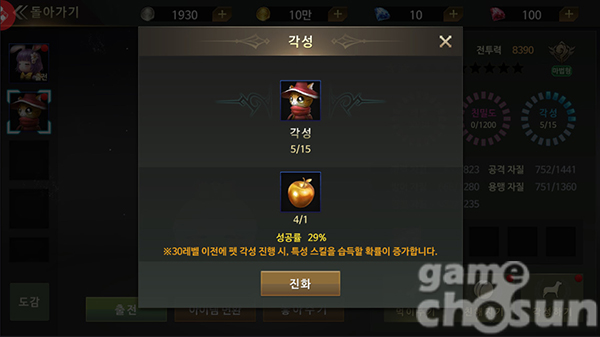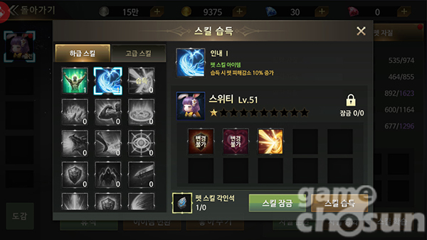 ▲ 자질 메뉴에서 펫의 자질을 바꾸거나 강화할 수 있다.
