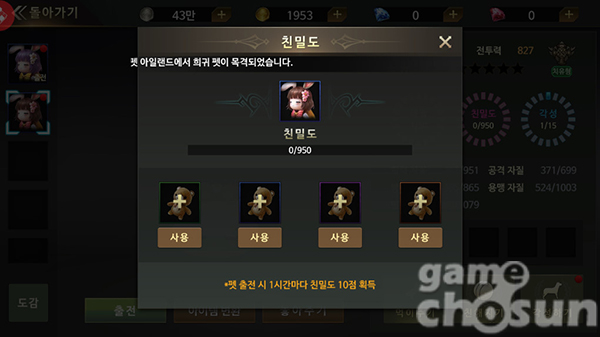 ▲ 펫이 진화하기 위해선 친밀도가 최대치가 되어야 한다.