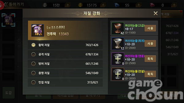 이렇게 마음에 드는 자질을 뽑았다면, 다음에는 여신의눈물 아이템을 사용하여 자질을 최대치까지 강화할 수 있다. 만약 펫의 자질을 강화한 후에 자질 훈련을 진행하면 여태까지 투자했던 여신의눈물을 모두 돌려받으니 참고하도록 하자.