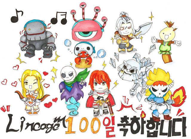 뛰어난 그림 솜씨로 리니지M의 100일을 축하하는 팬픽 축전이 다양하게 응모되었다. 특히 신혼 첫날부터 함께 리니지M을 시작했다고 소개하는 신혼부부의 사연과 TJ의 서신을 재미있게 풀이한 축전이 눈길을 끌었다.