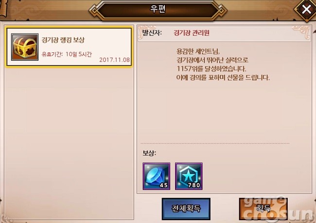 자신보다 높은 전투력의 플레이어를 상대로 대등하게 싸울 수 있는 이유는 대결을 펼치는 플레이어 캐릭터는 AI가 조종하기 때문. 더욱 많은 일일 순위 보상을 받기 위해서는 순위 산정 시간인 오후 9시 이전에 플레이하는 것이 좋으며, 다이아와 함께 수령받을 수 있는 경기장 코인은 경기장 상점에서 '세인트 영혼석', 돌파석, '고급 요리', '장비 상자', '장비 조각' 등으로 교환 가능하다.