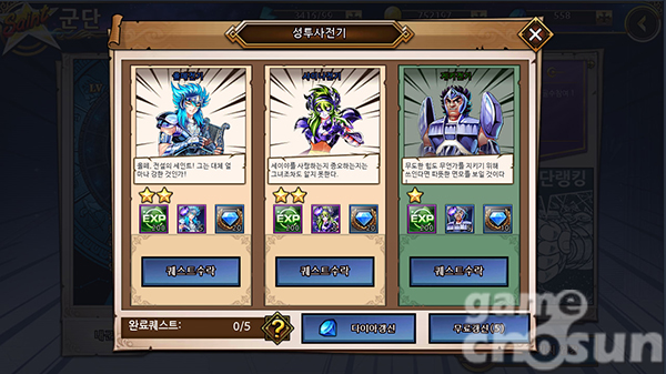 하지만 최대한 많은 세인트를 여럿 모아야 하는 것과, 내가 모을 수 있느냐는- 것은 별개의 문제다. 이 모든 것이 단순히 유료 뽑기를 통해서만 모을 수 있거나 한정적으로만 얻을 수 있다면 오히려 없느니만 못한 강화 시스템이 된다. 다행히 세인트세이야모바일은 게임 내 다양한 콘텐츠를 통해 세인트 및 세인트 합성에 필요한 세인트 영혼석을 얻을 수 있도록 배려하고 있다.