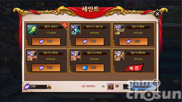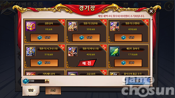 경기장 코인을 통해 구매할 수 있는 경기장 상점에서도 '성혼상자'와 '영혼석'을 구매할 수 있다.