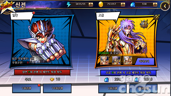 ▲ 다이아와 우정코인을 통해 세인트를 뽑을 수 있는 신전