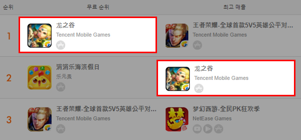 ▲ 3월 3일 기준 ‘드래곤네스트M(현지명 용지곡수유)’ 중국 애플앱스토어 순위 갈무리 (출처=게볼루션)