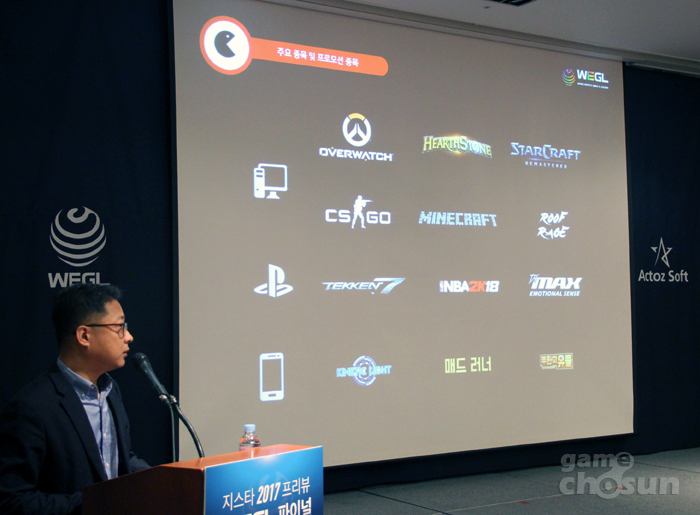 액토즈소프트는 WEGL 종목별 본선 및 결승 대회로 e스포츠에 올인했다. 현장에서 진행되는 WEGL 2017 파이널 종목은 '오버워치' '하스스톤' '스타크래프트:리마스터' '카운터스트라이크:글로벌오펜시브' '마인크래프트' '루프레이지' '철권7' 'NBA2K18' '디제이맥스리스펙트' '키네틱라이트' '매드러너' '무한의유물' 총 12개다.