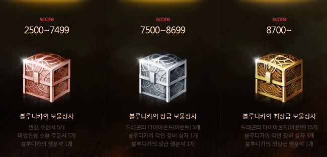 티저페이지에서는 사전예약 및 사전 캐릭터 생성 이벤트도 진행한다. 15일부터 28일까지 해당 페이지에서 미니게임을 진행하면 포인트에 따라 '블루디카의 보물상자'를 획득 가능하며 보물상자에서는 고급부터 영웅 등급 장비까지 얻을 수 있다. 또, 추첨을 통해서 '악마왕의 무기 상자'와 '희귀 제작 비법서'가 주어질 예정이다.