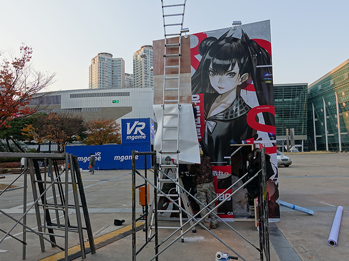 야외 광장은 작업을 일찌감치 마무리 지은 부스도 있었지만 외관 작업을 마무리 짓지 못한 부스들이 늦은 시간까지 작업을 이어갔다.