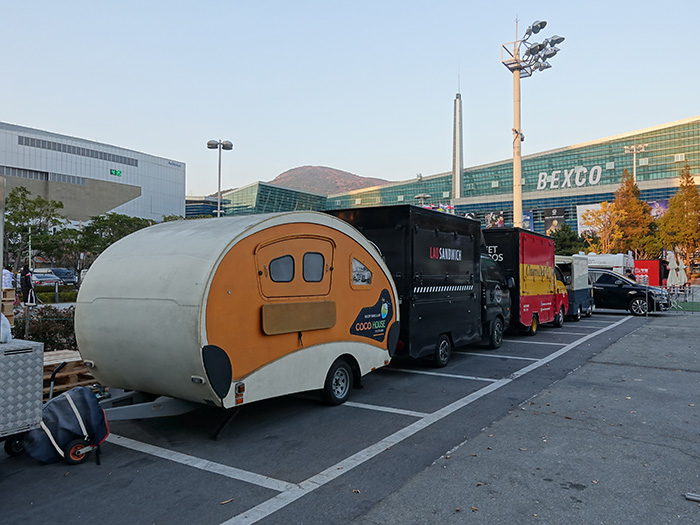 ▲ 푸드트럭이 주차장 한켠에 자리 잡았다. (출처: 게임조선 촬영)