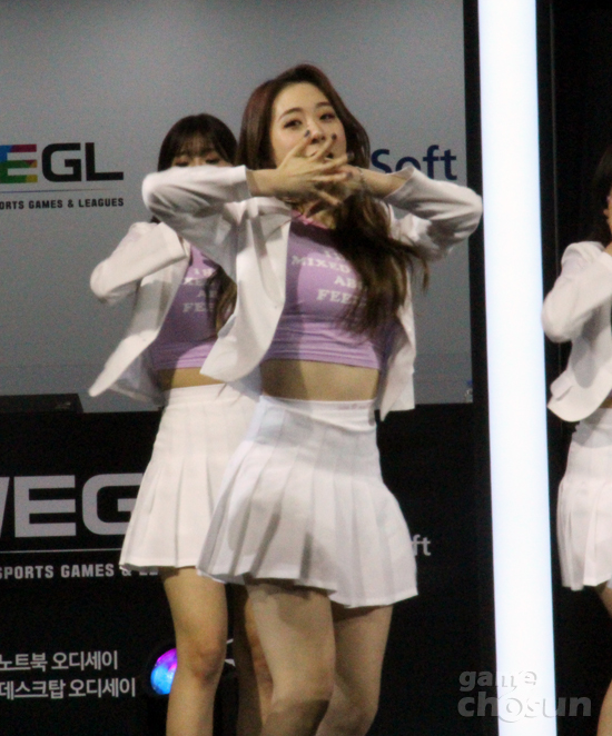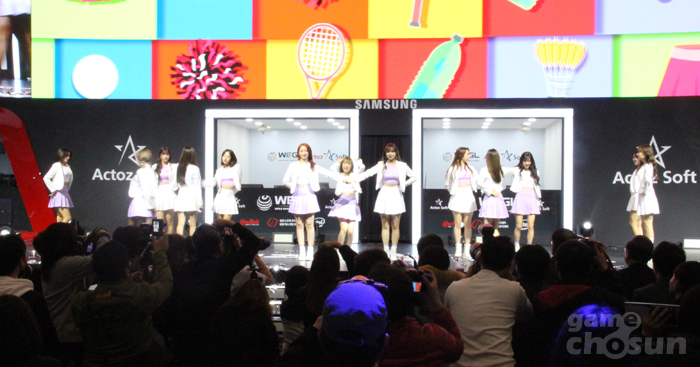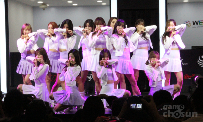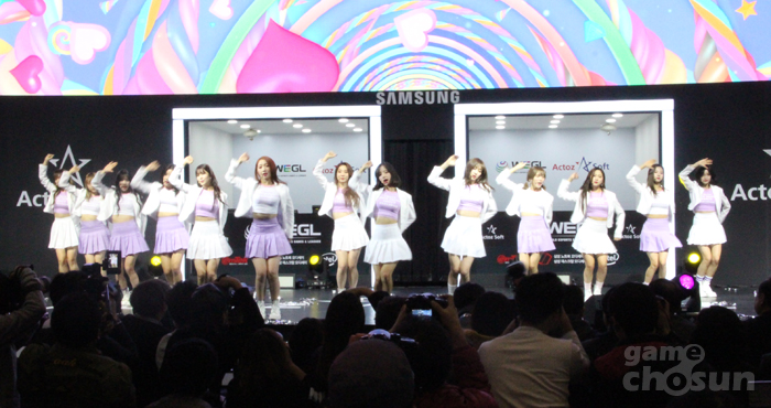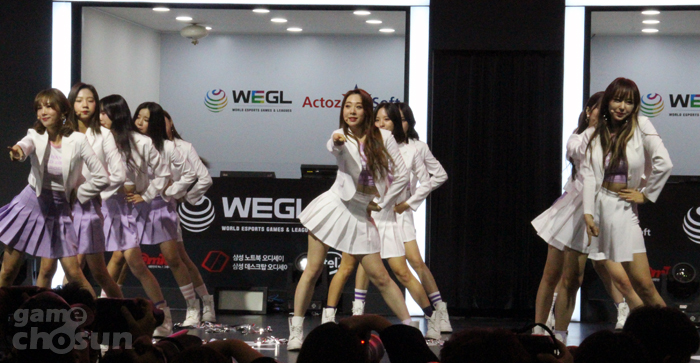 인기 걸그룹 '우주소녀'가 지스타 WEGL 파이널 개막식에 등장했다.