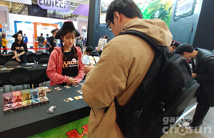 매직더개더링 부스에서는 샘플로 만들어진 다섯가지 덱 중 하나를 선택하여 매직더개더링의 튜토리얼부터 실제 경기까지 체험해볼 수 있으며, 샘플덱은 물론 경기 결과에 따라 다양한 상품을 받을 수 있다. 또한, 부스 내에서는 입문자에게 추천할만한 기본 덱을 할인된 가격에 판매하는 만큼 평소 하스스톤이나 섀도우버스 등 디지털 카드게임을 많이 즐겼던 사람들에게 큰 관심을 불러모았다.