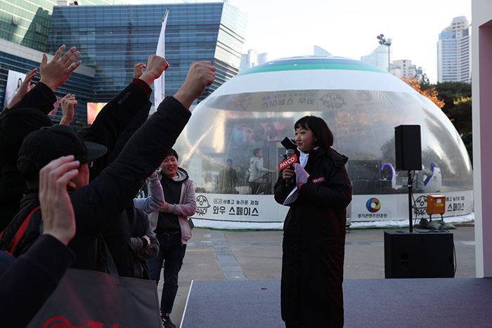 야외 부스는 구글플레이에서 페이코 포인트가 신규 결제 수단으로 적용된 것을 기념하는 행사다. 현장은 센텀시티역 1번 출구로 진입 시 가장 먼저 접할 수 있도록 꾸며졌다.