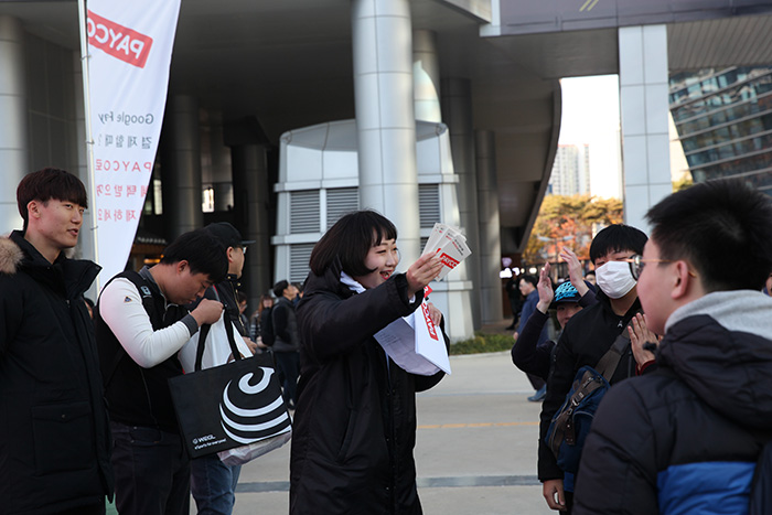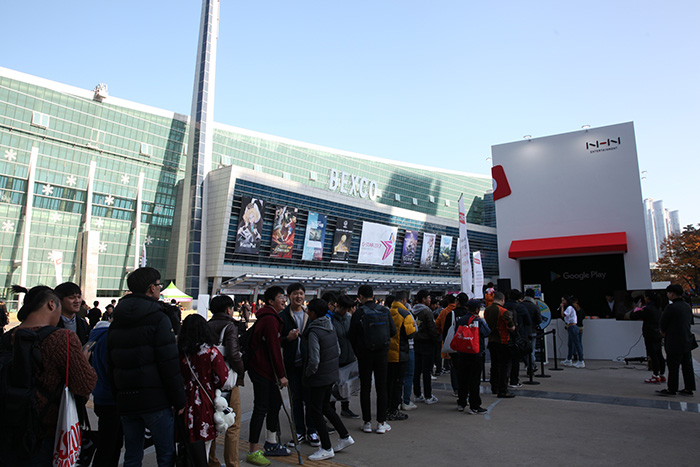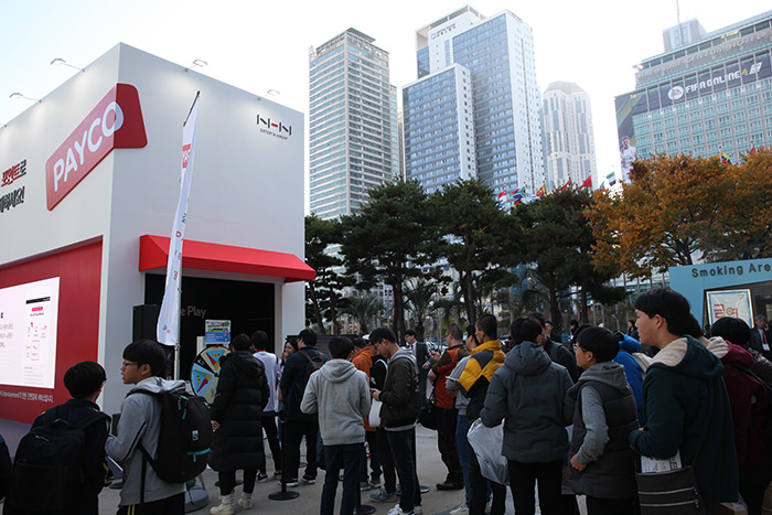 NHN엔터테인먼트(대표 정우진)가 부산 벡스코에서 개최 중인 '지스타 2017'에서 야외 부스를 차리고 간편 결제 서비스 '페이코'를 게이머에게 선보였다.