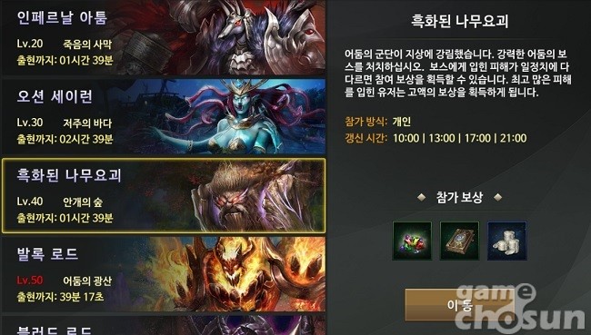 어둠의군단은 일종의 필드 보스 이벤트다. 지금도 알림 메시지를 통해 보스가 뜨는 시간을 알려주고 있지만, 모바일게임 특성상 잠깐 지나가는 메시지는 한눈에 파악하기 어렵다.