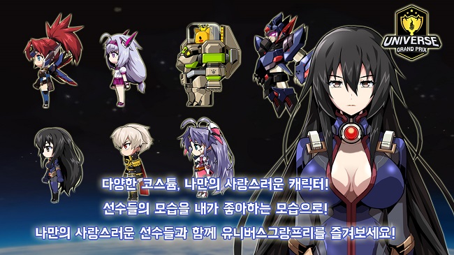 유니버스그랑프리는 출시 전, 10 만명이 넘는 사전 예약자 수로 큰 기대감을 조성한 바 있다. 플레이어는 우주 대운동회 감독이 돼 레이나/ 밀리아/ 시온 등의 우주 행성 대표선수들을 영입하고, 탐험 및 각종 미니 게임을 즐길 수 있는 것이 특징이다.