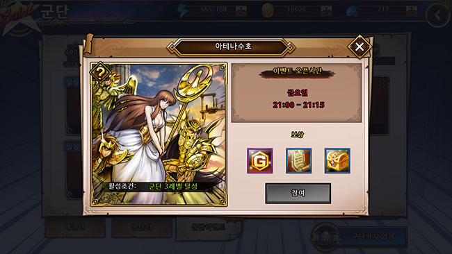 단순히 세인트 성장에 필요한 보상을 제공하는데 그치는 수준이 아니라 원작 스토리의 요소와 배합하여 유저의 호기심을 자극하고, 아울러 군단원과 협력하는 계기를 만들어 주는 것이 바로 군단 이벤트의 가장 특징이다.