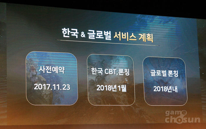 검은사막모바일은 펄어비스 자체 서비스로 23일부터 사전예약을 시작하고, 한국 CBT(비공개시범테스트)와 론칭은 내년 1월 진행될 예정이다. 글로벌 출시는 2018년 출시를 목표로 한다.