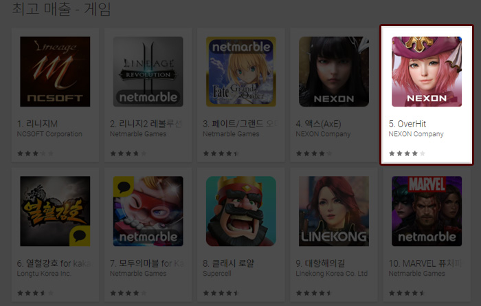'오버히트'는 27일 사전 오픈 하루 만에 양대 마켓 인기게임 1위를 달성한데 이어. 구글플레이 매출 5위, 애플앱스토어 매출 2위를 기록했다.