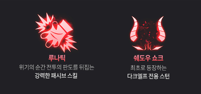 ▲ 다크엘프 신규 스킬 2종, 루나틱과 쉐도우 쇼크