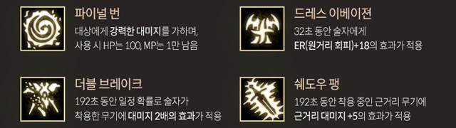 다만, 아머 브레이크 스킬과 함께 두 스킬의 등급이 전설, 영웅 등급으로 분류하고 있어 스킬 입수 난이도가 상당할 것으로 보인다. 아래는 리니지M이 공개한 다크엘프 스킬 정보다.