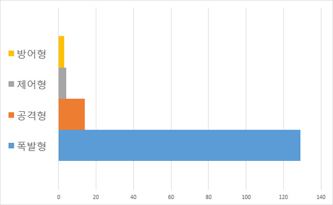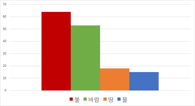 현재 물속성은 사용 비중이 가장 낮은 것으로 나타났으며 세 번째로 많이 쓰이는 땅속성도 불 및 바람속성과는 큰 격차를 보이고 있다.