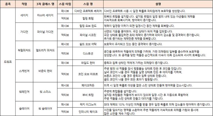 그 외에도 '드워프'의 2차 전직 클래스'에 관한 내용이 공개됐다. 상세 내용은 아래와 같다.