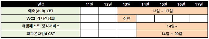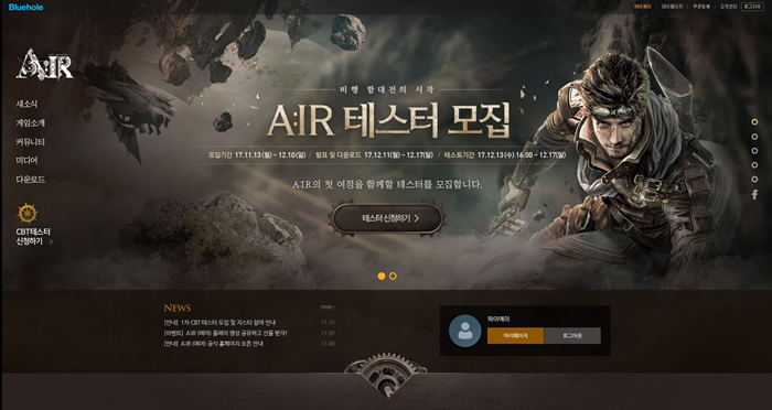 블루홀은 오는 13일부터 17일까지 자사의 신작 MMORPG(다중접속역할수행게임) '에어(A:IR)의 1차 비공개시범테스트를 진행한다.