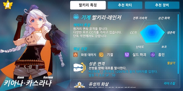 발키리 레인저는 극한 회피로 블랙홀을 생성하여 적을 한 점으로 예쁘게 모아줄 수 있는 서브딜러 겸 서포터이며 역시 본인이 기계 속성이기 때문에 차원 경계돌파의 리더 스킬을 발동 조건을 충족한다.