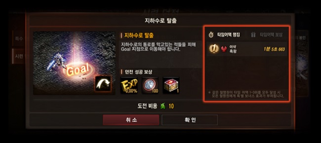 시련 던전에도 변화를 줬다. 지루하기만 하던 시련 던전에 타임어택을 추가함으로써, 도전 욕구를 자극한다. 이제는 시련 던전을 도전하면 타임어택이 진행되고, 각 시련 던전을 완료 시에 타임 기록을 통해 랭킹이 갱신된다. 이를 통해 랭킹에 따라서 개인 보상을 획득 가능하며 동일한 혈맹의 플레이어가 랭킹 1~3위를 달성할 경우 혈맹원 모두에게 특별 보너스 효과가 부여될 것이라고 전했다.