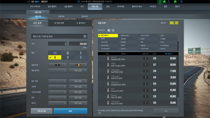 하지만 염려할 필요 없다. 거래 시장에서 저렴한 차량을 구입하면 되기 때문이다. 13일 기준 3까지 강화된 A급 차량은 30만 SP 미만이니 이를 통해 단기간에 능력치를 올릴 수 있다.