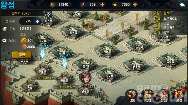 왕성 관직은 하루 녹봉 뿐 아니라 달성 보상도 있어 초중반 진영을 꾸려감에 있어 가장 큰 도움이 되는 콘텐츠다.