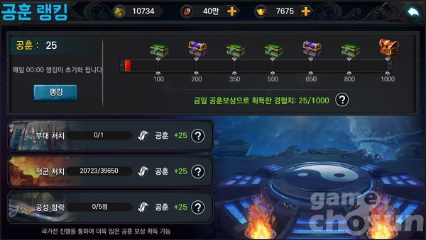 공훈은 전체지도에서 벌어지는 수많은 전투에 참여 시 조금씩 올라 랭킹을 올릴 수 있는 시스템이다.