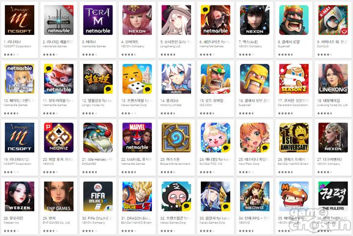 ▲ 2017년 12월 26일 오전 구글플레이 게임 부문 최고 매출 순위 갈무리