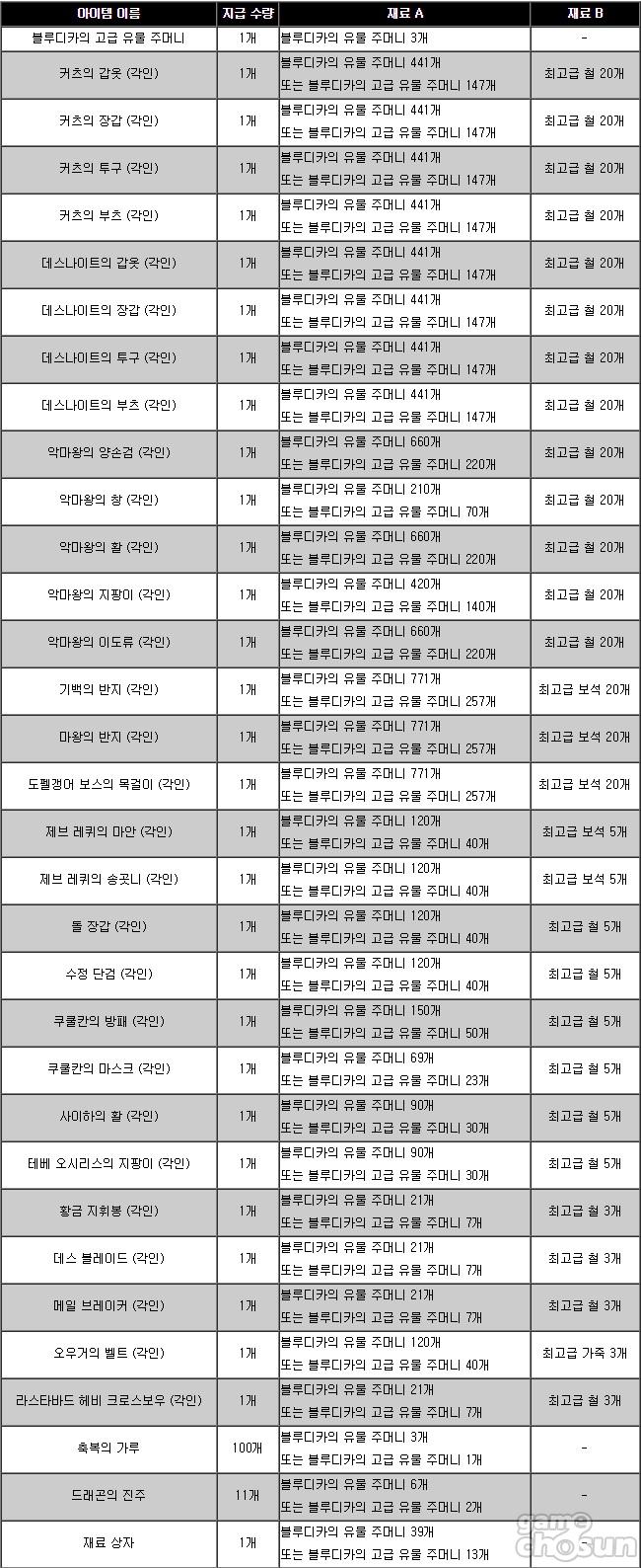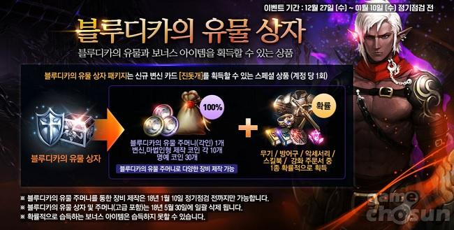 이번 업데이트는 신규 상품 '블루디카의 유물 상자' 및 신규 변신 '진돗개'가 추가된 것을 주요 골자로 한다. 특히 블루디카의 유물 상자를 통해 '커츠' 시리즈 영웅 등급 방어구부터 '악마왕' 시리즈 영웅 등급 무기까지 제작 가능해 큰 인기를 끌 것으로 보인다.