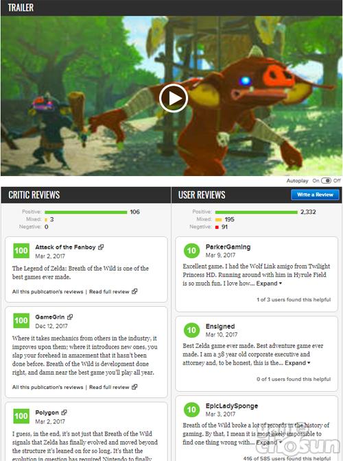 출시 초기 ‘브레스오브더와일드’이 국내에서 화제를 모았던 것도 만점 행렬이 이어진 메타크리틱 점수가 알려진 것이 컸다. ‘브레스오브더와일드’는 당시 98점, 현재는 97점을 기록 중이다.