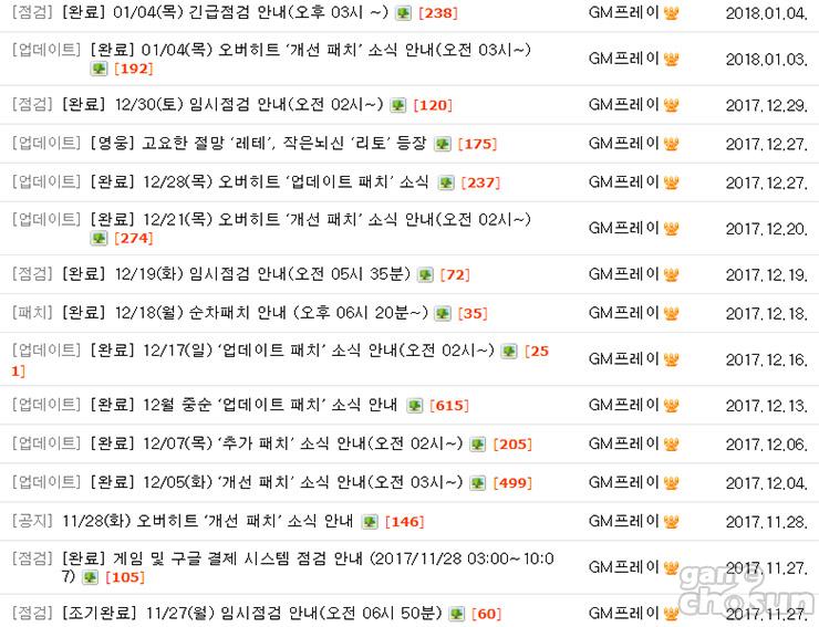 △ 오버히트 공식 카페를 보면 출시 40여일 동안 9번의 업데이트가 단행했다. (출처 - 공식 카페 갈무리)