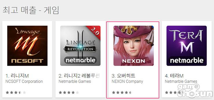 오버히트는 지난 11월 28일 출시(사전 서비스 동월 26일)해 구글플레이 게임 부문 최고매출 순위를 기준으로 28일 4위로 출발해 12월 2일 매출 3위를 기록하며 최고 성적을 올렸다.