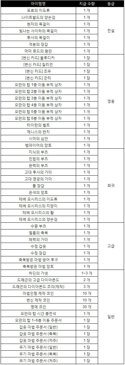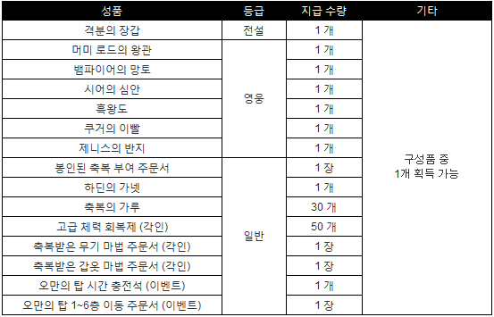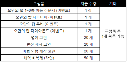 ◆ 오만의 탑 특별 상자 보상