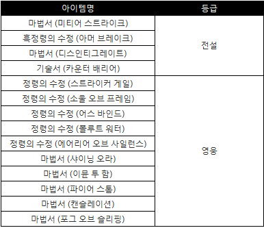 ◆ 새롭게 추가되는 아이템