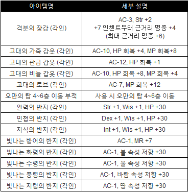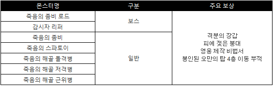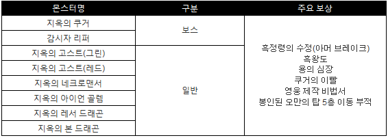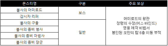◆ 오만의탑 4층 등장 몬스터&드랍목록