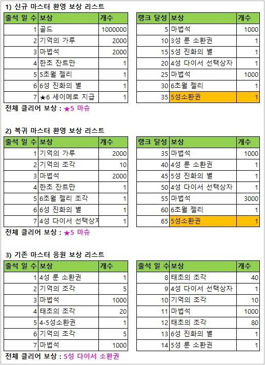 특히 이벤트 기간 동안 유저의 랭크 업을 도와주는 버프와 아이템을 제공하는 매일 버프 이벤트와 핫타임 이벤트가 동시에 진행되며 마법석, 열쇠를 평소의 절반 가격으로 매입할 수 있는 이벤트도 동시에 진행되므로 수행 난이도 자체는 크게 어렵지 않다.
