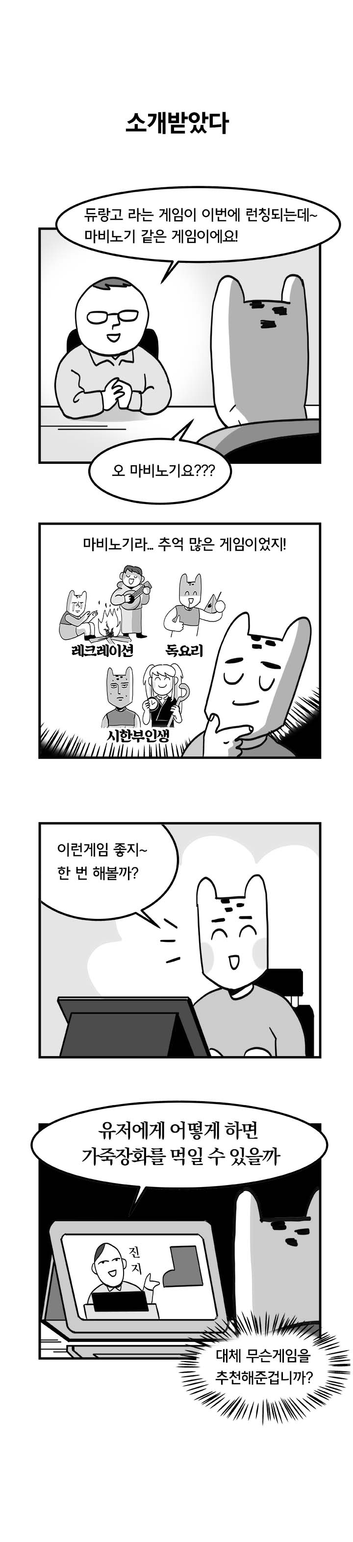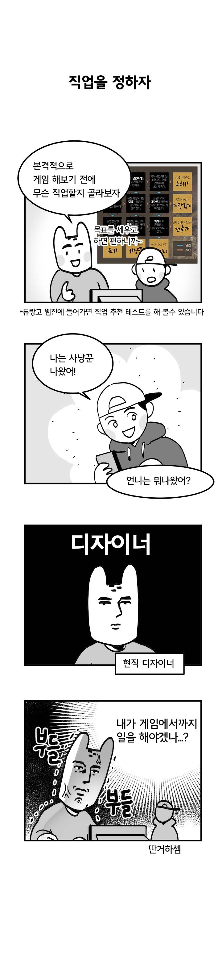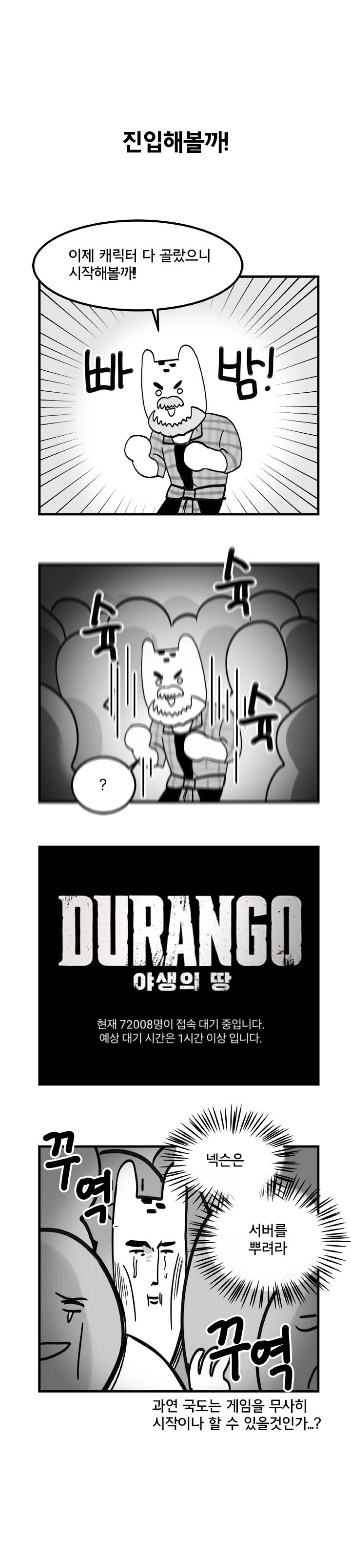 그 중에서도 '국도'라는 필명을 사용하는 웹툰 작가는 듀랑고라는 게임을 접하기 전의 느낌과 함께 그에 대한 기대감, 게임을 시작하는 모습까지 잘 나타냈다. 특히 오픈 첫날 이용자의 접속 폭주로 인해 게임 진행이 어려웠던 부분에 대해서도 위트있게 잘 풀어냈다.