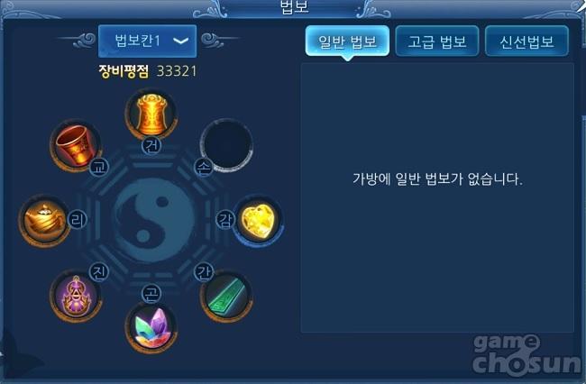 일종의 아티팩트로 볼 수 있는 법보는 일반 장비처럼 캐릭터에 장착하여 그 부가 능력치를 받을 수 있는 아이템으로, 최대 8개까지 장착하는 것이 가능하다.