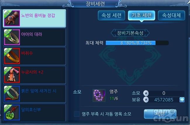 세련은 장비 아이템의 옵션을 변경하거나 수치를 더욱 높일 수 있는 강화 방법을 말한다.