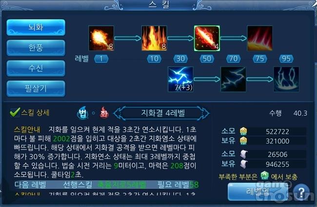 앞서 설명한 강화가 장비 강화에 관련된 것이었다면 스킬 강화는 말 그대로 스킬레벨을 올려 스킬의 효과를 더욱 강력하게 성장시킬 수 있다.