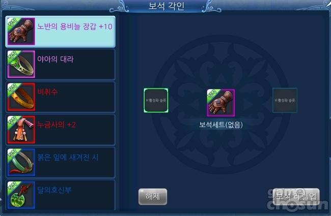 보석은 장비에 주어진 슬롯을 '금강송곳'으로 뚫고 해당 위치에 보석을 장착해 추가 옵션을 얻는 강화 형태다. 실제 아이템 중에는 기본 옵션은 동레벨의 다른 장비보다 낫지만, 보석 슬롯이 많아 실제 사용 효율이 더 좋은 아이템이 존재할 정도로 보석 강화에 대한 효과는 매우 큰 편.